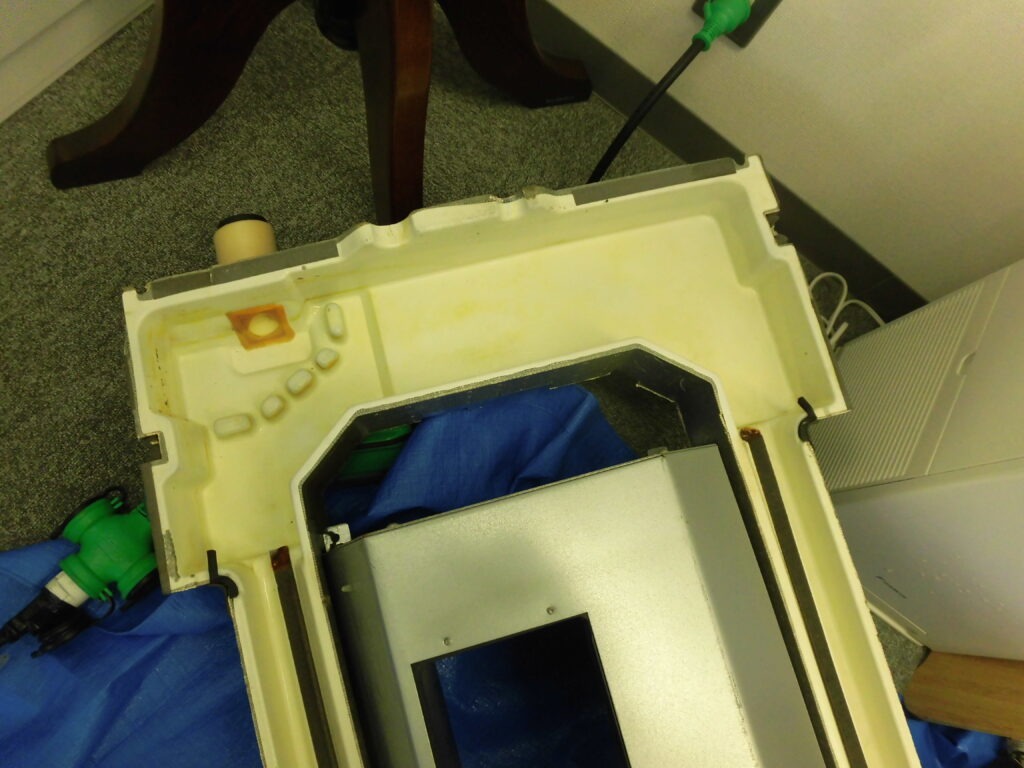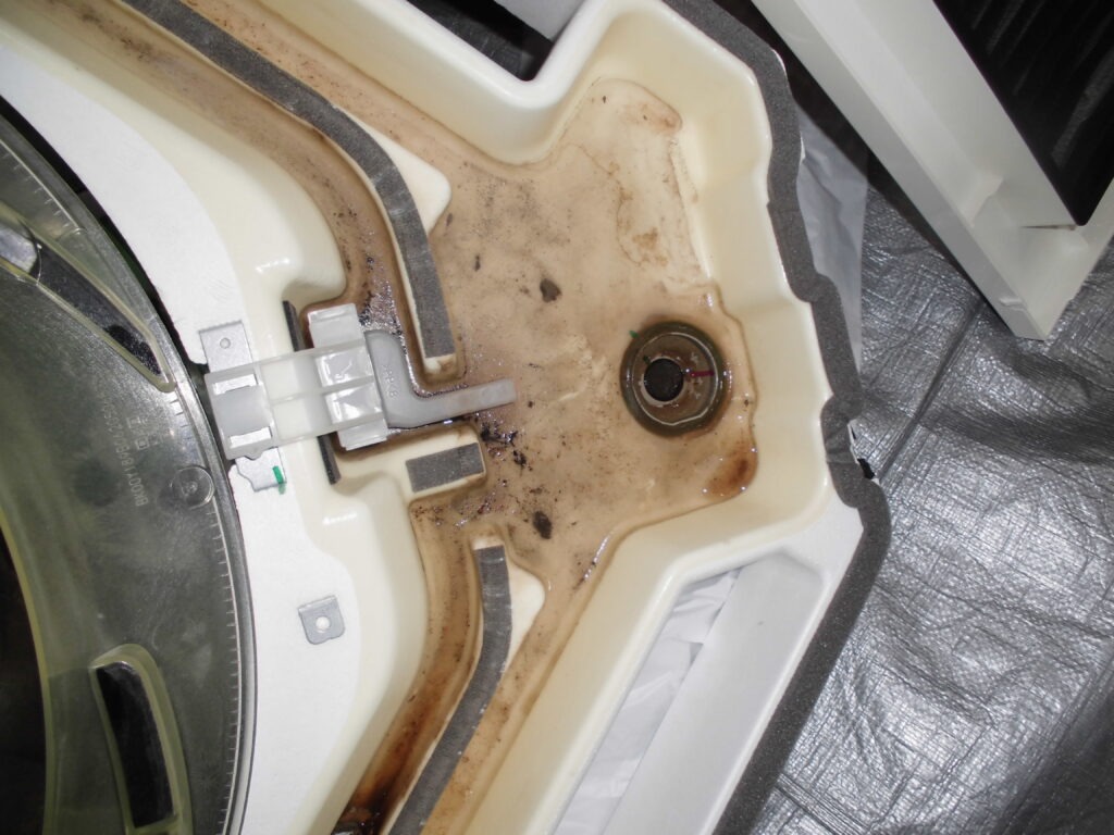 洗浄前のドレンパンにはカビや汚れが付着しています。