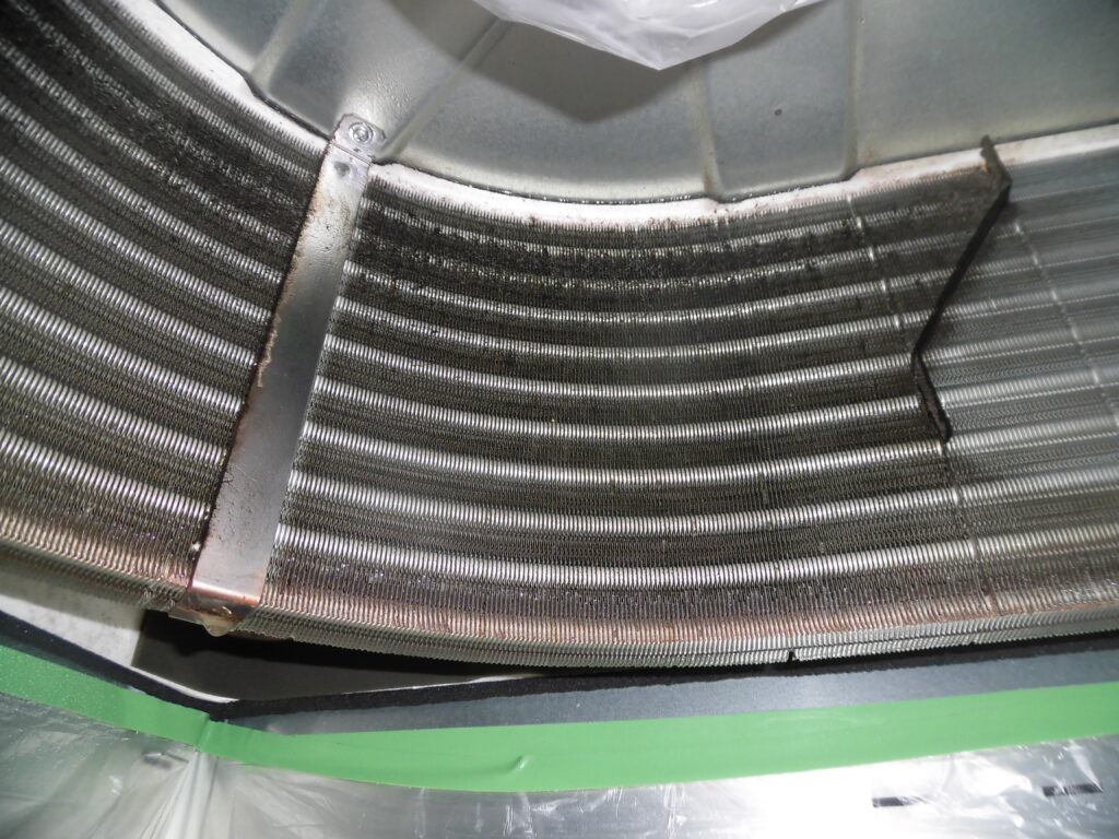 熱交換器を高圧洗浄し、奥までこびりついた汚れを除去しました。