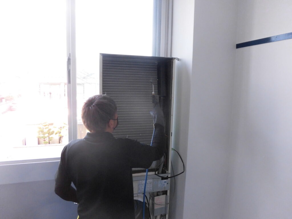 作業前にエアコンの動作確認を行い、その後ブレーカーを落として安全を確保いたします。
