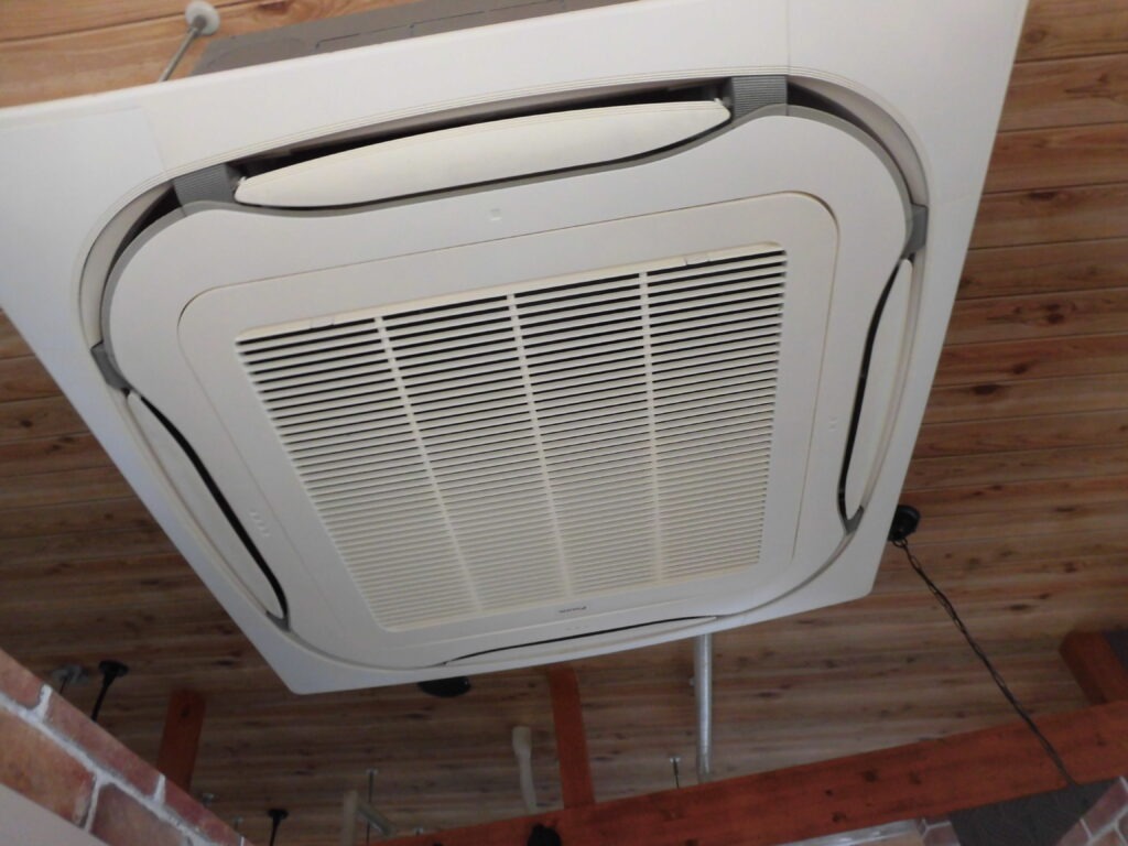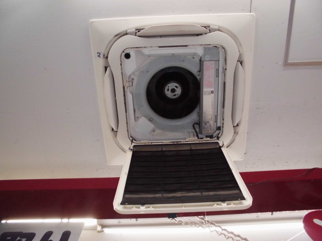 名張市の飲食店舗で天井カセット型エアコンを分解清掃しました。
