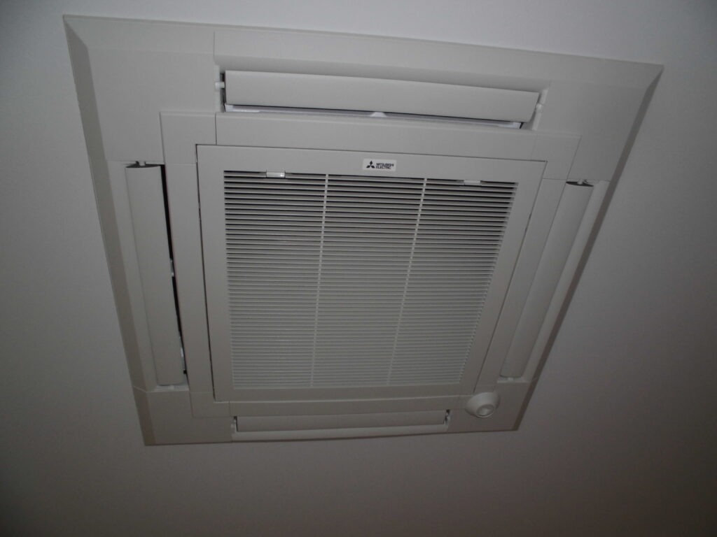四日市市の大規模工場にて天井カセット型エアコンを複数台分解洗浄しました。
