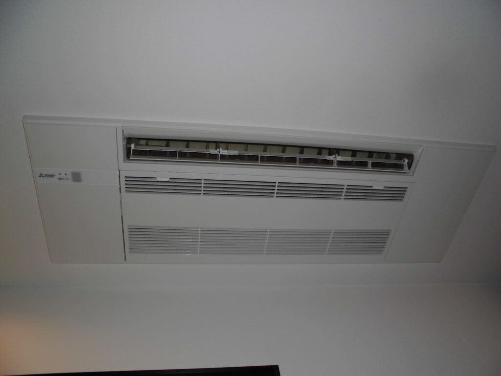 鈴鹿市の自動車部品工場にて、天吊り型エアコンの分解洗浄を実施しました。
