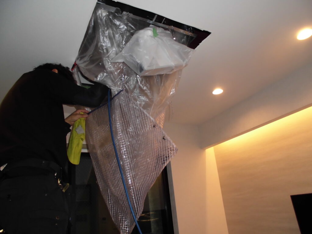作業箇所の周囲をしっかりと養生し、壁や床・備品を汚さないよう徹底して保護します。
