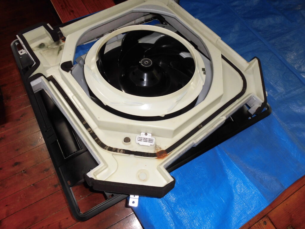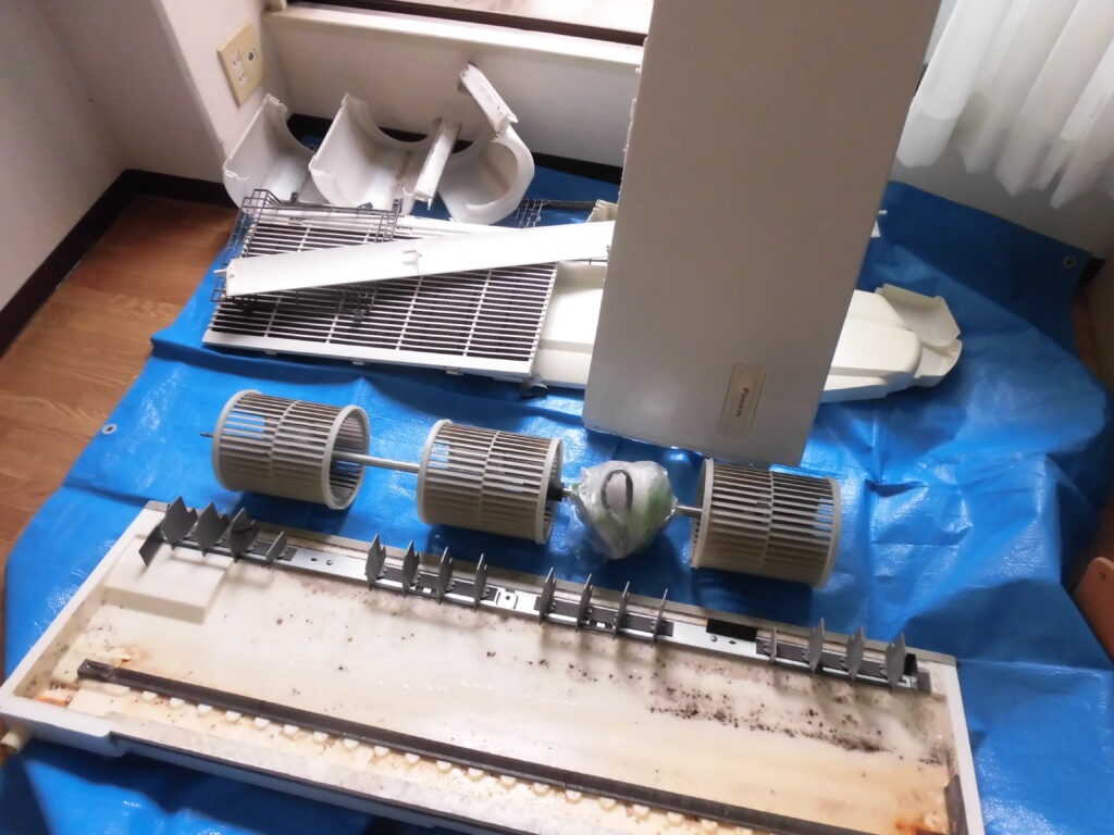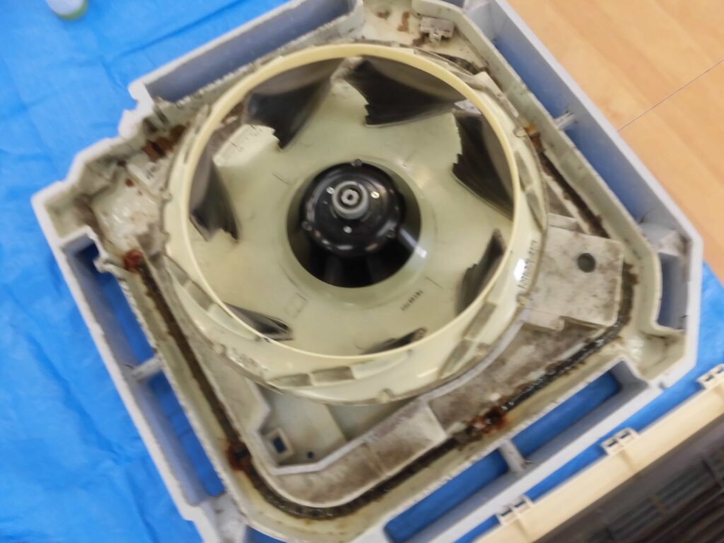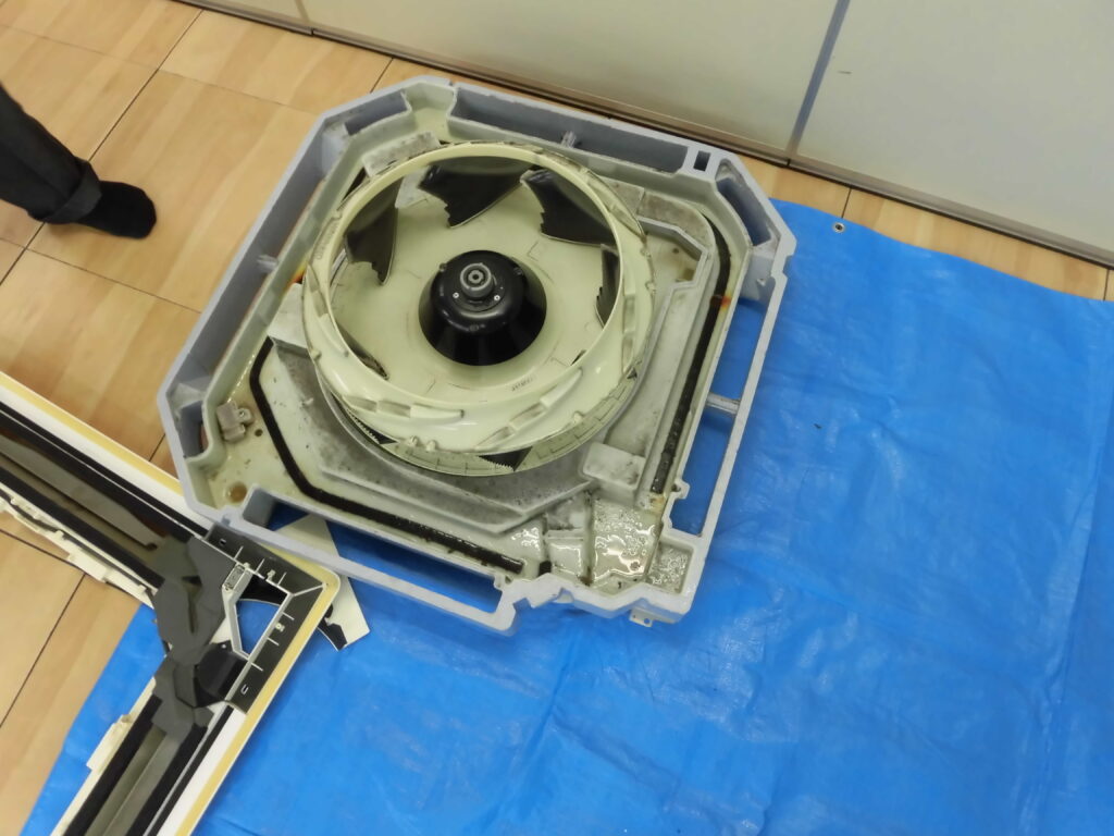長年の使用で風量が低下し、室内に空調ムラが生じていましたが、分解洗浄により送風効率が回復。