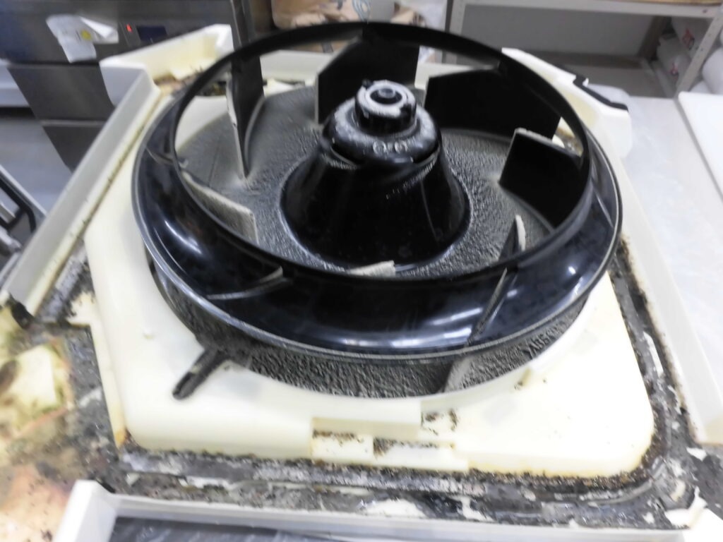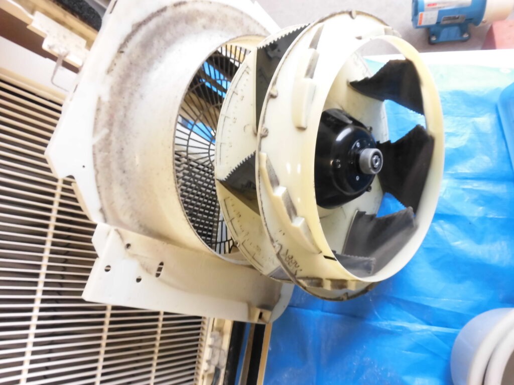 大和高田市の飲食店舗でエアコン内部のファンを分解洗浄しました。