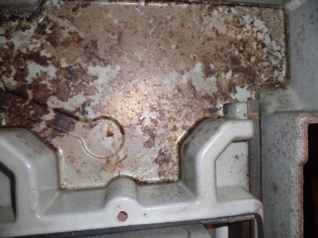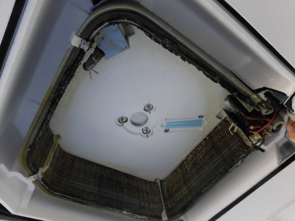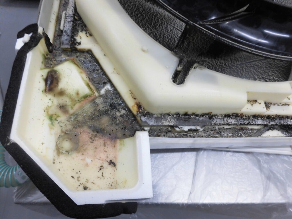 洗浄前のドレンパンにはカビや汚れが付着しています。