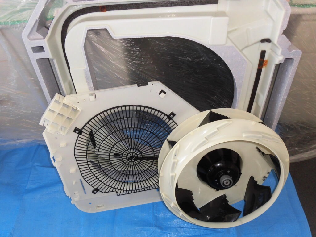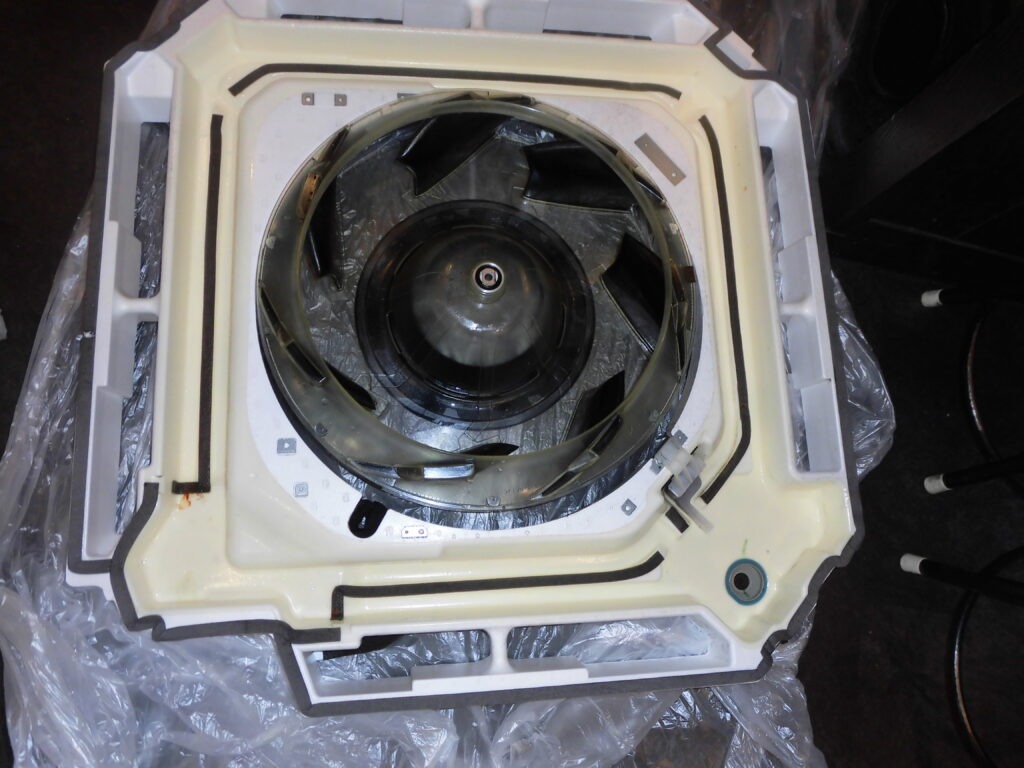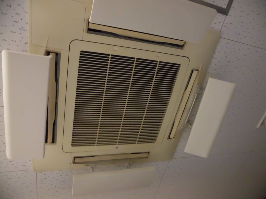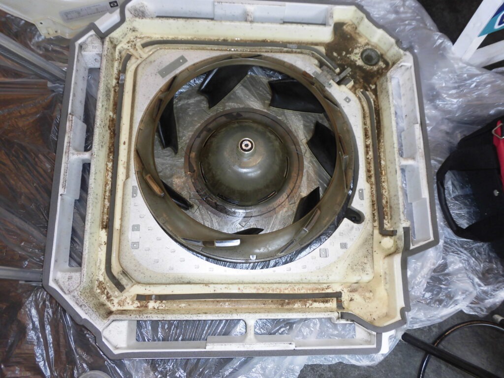 大津市内のホテルで、客室に設置された天井カセット型エアコンを分解洗浄しました。