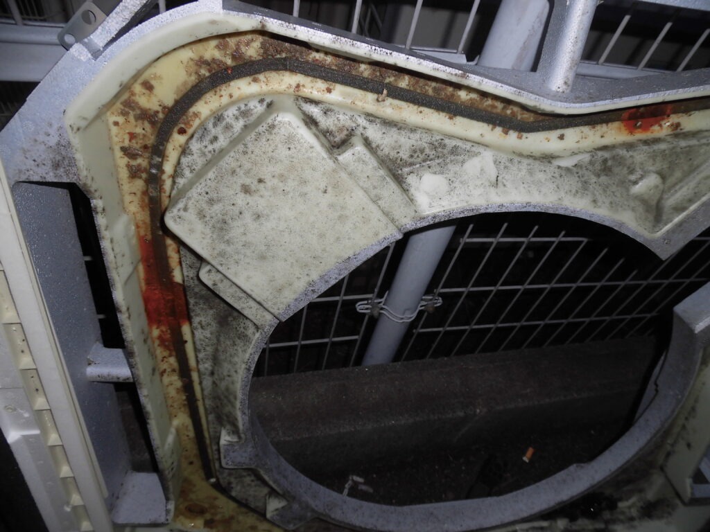 熱交換器を高圧洗浄し、奥までこびりついた汚れを除去しました。