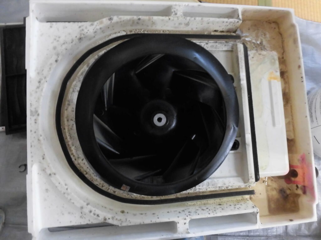 送風効率の低下とにおいの発生が問題でしたが、内部の油汚れを取り除くことで空気循環が改善。